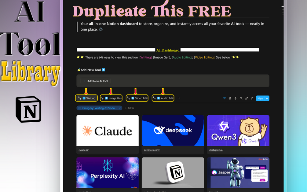 AI TOOLS LIBRARY - NOTION TEMPLATE (Duplicate Free! ⚡)